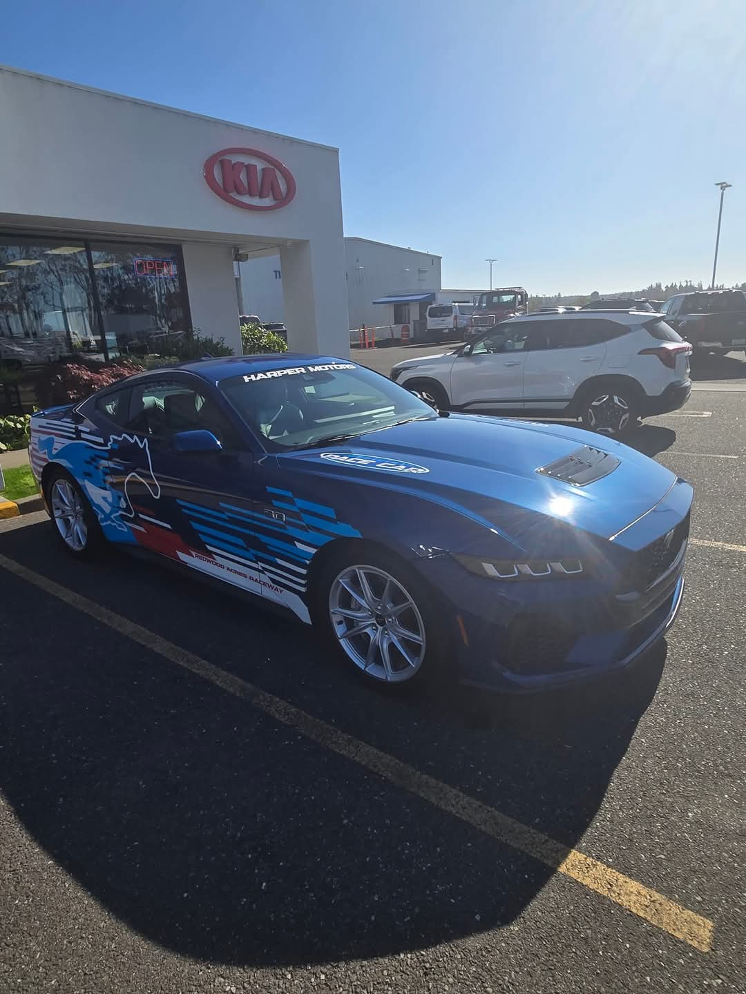 The car in the picture? That’s the one Harper Ford sold me. But when I got it, it looked nothing like that. By the time it landed in my driveway, it was scratched from tearing off the Dark Horse wrap, dinged from installing a light bar, and beat up like it had just come out of a demolition derby.